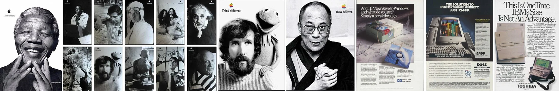 Left Apple ads (thanks to TBWA) from 1997 and right competitor ads that also ran in 1997